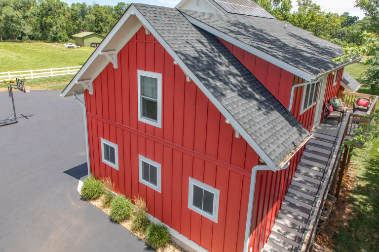 The Barn at Haden is a custom well appointed finished 2 bedroom, 1 full bath space elevated above a detached 3 car garage with a large outdoor private deck. It features a fully equipped gourmet kitchen with high end finishes. Whether staying for a night or for the weekend, it is an experience to enjoy the easy living Crozet has to offer. Walkable/bikeable to downtown Crozet, 2 miles to King Family Vineyard & Chiles Peach Orchard and 15 minutes from Charlottesville.